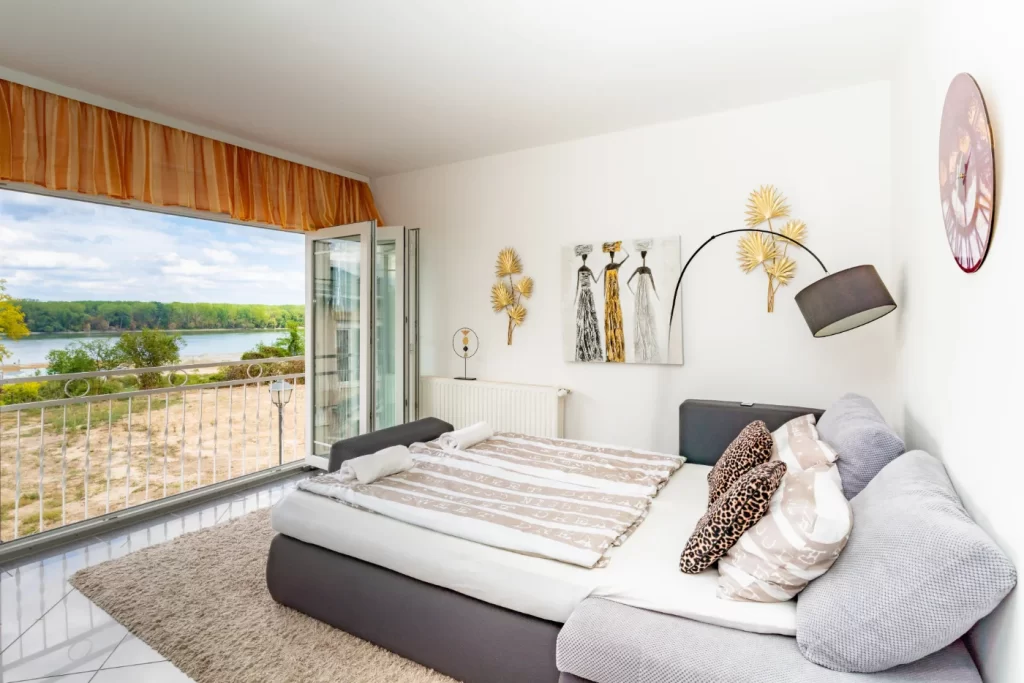 - spavaća soba s velikim boxspring bračnim krevetom, dvosjed na razvlačenje (140×193), klima uređaj, TV ravnog ekrana, besplatni Wi-Fi, prekrasan pogled na Dunav