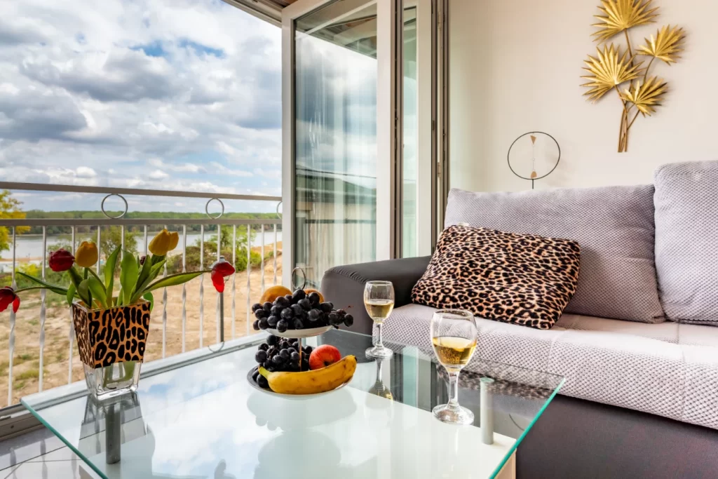 - kompletno opremljena kuhinja s pogledom na Dunav, ploča za kuhanje, hladnjak, posuđe, mikrovalna i pećnica